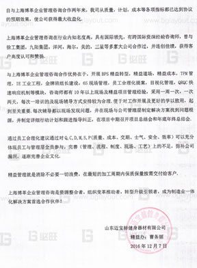 顧問團(tuán)隊(duì)平均從事工廠經(jīng)驗(yàn)8年以上,現(xiàn)場咨詢經(jīng)驗(yàn)5年以上,項(xiàng)目續(xù)簽率80%以上; -