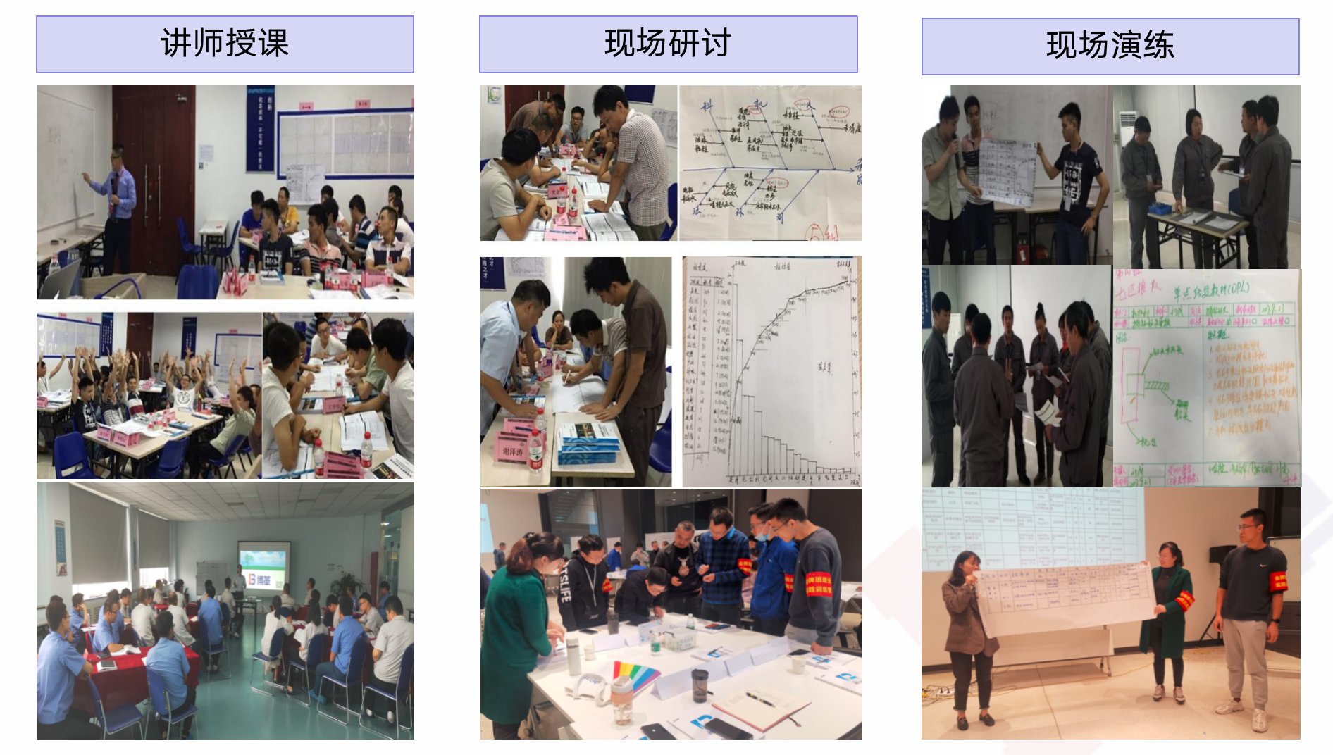 實戰性:在課程中,培訓老師不但講解理論知識,而且還去現場進行落地指導,使精益工具在現場能得到快速應用。